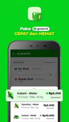 Vai jums ir jāsteidzas uz tikšanos vai vienkārši jāpārvietojas pa pilsētu? GoRide piedāvā ātru un uzticamu pārvietošanos ar motociklu, savukārt GoCar nodrošinās papildu komfortu jūsu ceļojumos. Bet, ja pēkšņi rodas vēlme pēc gardas maltītes kopā ar tuviniekiem, GoFood ir jūsu atbilde – plaša restorānu izvēle un ātra piegāde tieši līdz jūsu durvīm. Nepieciešams nosūtīt sūtījumu steidzami? GoSend nodrošinās drošu un savlaicīgu piegādi ar papildu apdrošināšanas aizsardzību, lai jūsu sūtījums sasniegtu galamērķi pilnīgā drošībā.