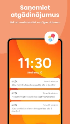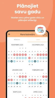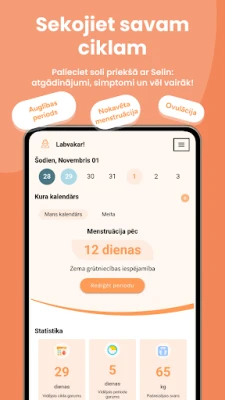 Selin ir jūsu uzticamais palīgs, lai precīzi izsekotu mēnešreižu ciklu un ovulāciju. Šis ideālais kalendārs sniedz ieskatu jūsu auglības periodos un veselībā, palīdzot plānot vai izvairīties no grūtniecības ar vieglumu un pārliecību.