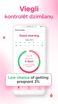 Izmantojot šo jaudīgo rīku, jūs spēsiet proaktīvi plānot savu dzīvi, jo precīzi zināsiet, kad sagaidāmas mēnešreizes, ovulācija un auglīgās dienas. Tas ir neaizstājams palīgs, ja cenšaties palikt stāvoklī, piedāvājot mērķtiecīgus padomus un norādes par auglīgākajām dienām, vai tieši pretēji – palīdzot efektīvāk kontrolēt dzimstību, aprēķinot drošos periodus. Vēl vairāk, regulāra simptomu reģistrēšana ļaus jums ātri atklāt potenciālās veselības problēmas, neregulārus ciklus vai pārmaiņas, piemēram, perimenopauzes sākumu. Iegūstiet dziļāku izpratni par savu ķermeni un pieņemiet pārdomātus lēmumus par savu veselību un nākotni, padarot šo lietotni par jūsu uzticamo partneri katrā dzīves posmā.