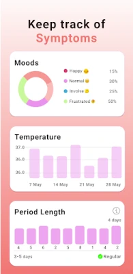 Period Tracker nodrošina nepārtrauktu atbalstu jūsu reproduktīvās veselības ceļojumā. Piekļūstiet detalizētai mēnešreižu vēsturei un vizuāliem ciklu modeļiem, kas ļauj labāk plānot nākotni un identificēt jebkādas novirzes. Ja esat stāvoklī, Period Tracker var būt jūsu uzticamais pavadonis, sekojot līdzi grūtniecības norisei un sniedzot ieskatu par svarīgākajiem attīstības posmiem. Tas ir visaptverošs risinājums, kas sniedz spēku un informāciju, lai pieņemtu apzinātus lēmumus par savu veselību.