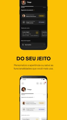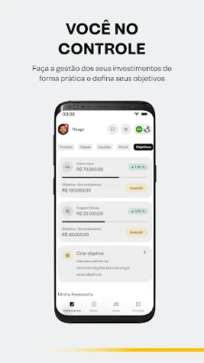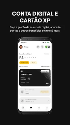 XP pieredze izceļas ar nepārspējamu vienkāršību. Navigācija ir bez piepūles, ļaujot ātri atrast nepieciešamo informāciju tikai ar dažiem pieskārieniem, tādējādi atvadoties no jebkādas nevajadzīgas sarežģītības. Turklāt, atzīstot, ka katra klienta finansiālās vajadzības ir unikālas, XP piedāvā jaunu personalizācijas līmeni. Jūs varat izvēlēties starp gaišo vai tumšo tēmu, aktivizēt vai deaktivizēt biržas cilni, un XP pielāgosies jūsu visbiežāk lietotajām funkcijām, padarot katru mijiedarbību maksimāli atbilstošu un personīgu.